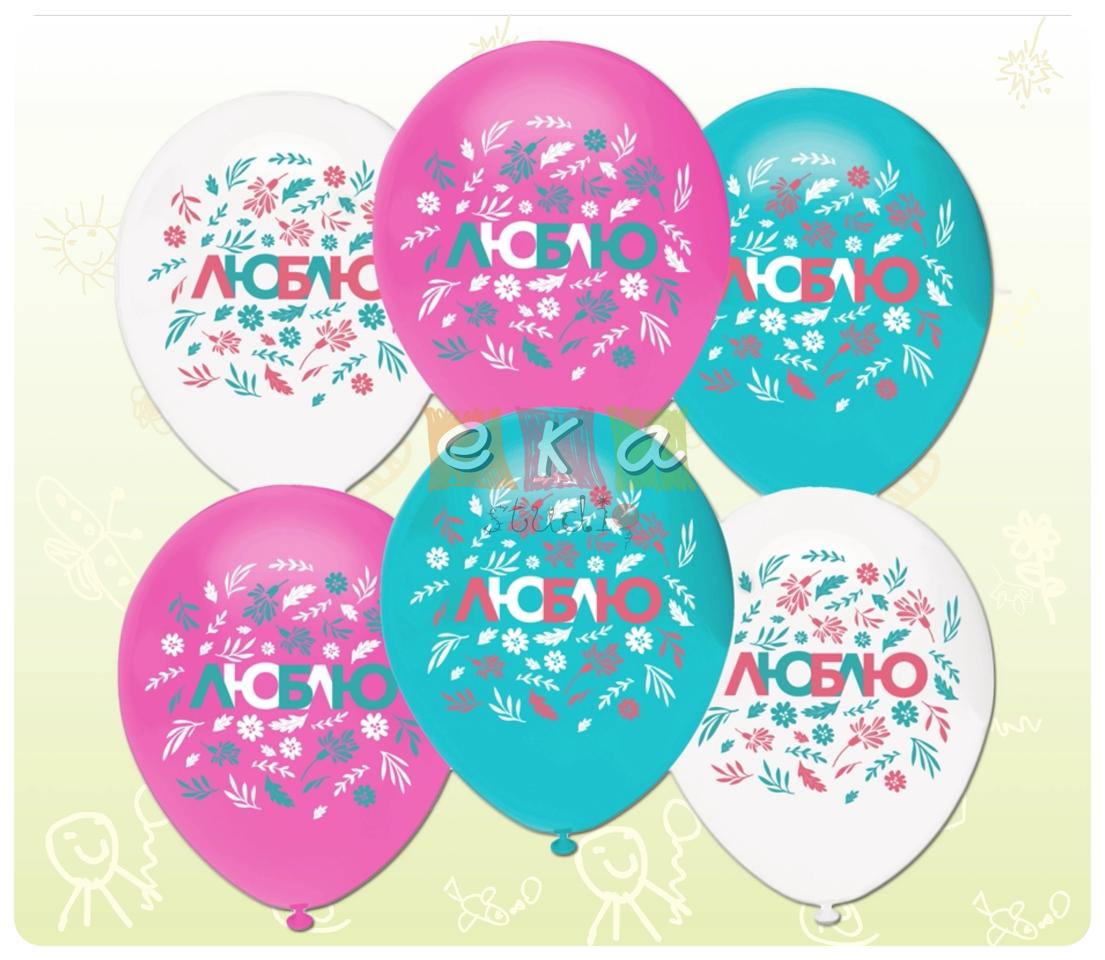 Гелиевые шары с цветочным декором и надписью "Люблю"