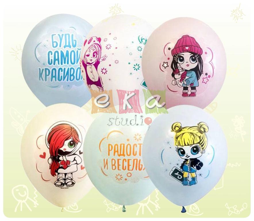 Шары "Baby girls" пастельных оттенков серии Macaroons с яркими многоцветными рисунками милых девчонок и оригинальными надписями.